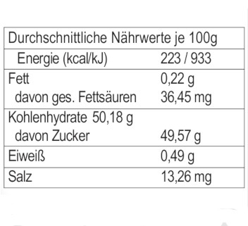 Gesamtfruchtgehalt: hergestellt aus 50g Früchten je 100g